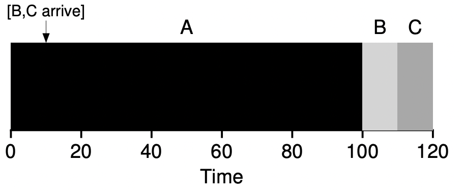 이제 우리는 응답 시간을 작업이 시스템에 도착하는 시간부터 작업이 예약된 첫 번째 시간까지로 정의한다.